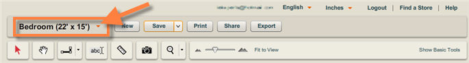 The name of your floor plan is displayed to the far left of the plan control bar. When you create a plan from a sample design, the design's name is displayed as the plan title until you save the plan and give it a different name.